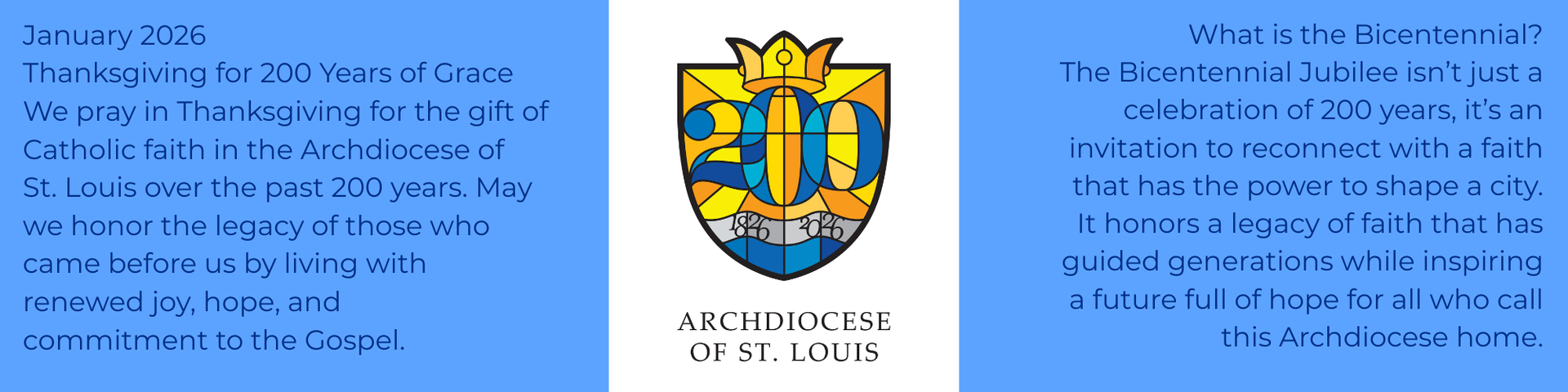 We pray in thanksgiving for the gift of Catholic faith in the Archdiocese of St. Louis over the past 200 years. May we honor the legacy of those who came before us by living with renewed joy, hope, and commitment to the Gospel.