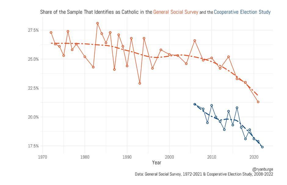 A couple of weeks ago I highlighted the shortage of priests. The issue is more complex than just a lack of vocations. There has been a significant drop in Mass attendance over the decades. In the late 1950s, approximately 62% of Catholics attended Mass on a weekly basis.